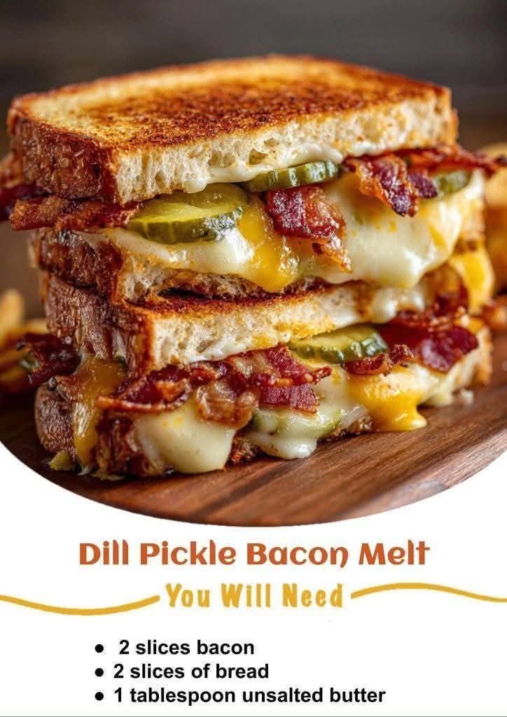 This Dill Pickle Bacon Melt is the ultimate savory sandwich—crispy bacon, tangy dill pickles, and gooey melted cheese layered between buttery toasted bread. Each bite delivers a perfect balance of salty, tangy, and cheesy goodness that pickle and bacon lovers will crave.